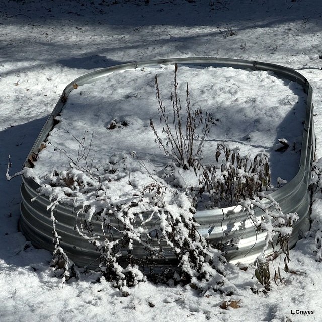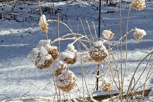 Although I love spring, I’m always sorry to see the last of winter, and I was glad for this final (I think!) bit of snow that left its lovely print on the garden.