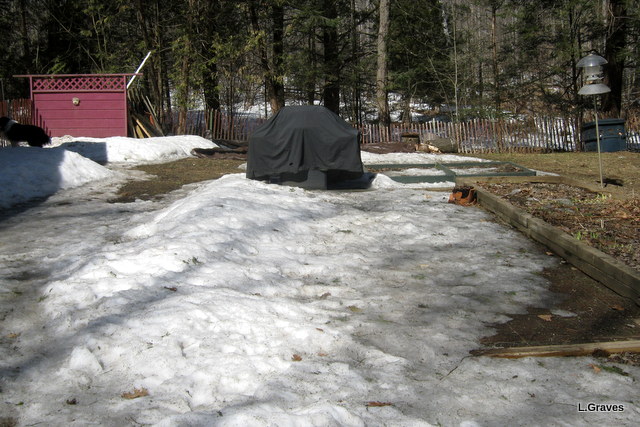 Therefore, this year, snow-out on the patio was March 30, a full twenty-four days sooner than April 22, when we hoped the patio would be clear for Shannon’s birthday.