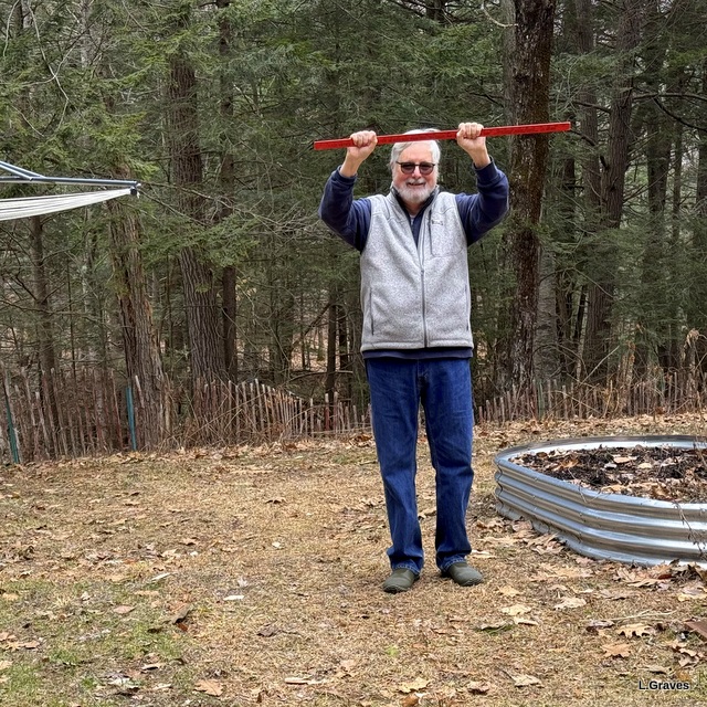 Well, folks, this might very well be the last week for Snow-Gauge Clif. The backyard is essentially snow-free, and this morning, when I took a picture of Clif, he was in a celebratory mood.