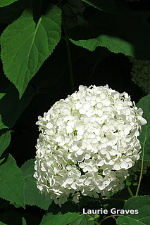 I didn’t need to be asked twice. After taking pictures of the front garden, I duly headed out back to where the white hydrangeas grew. I was certainly glad I followed Joan’s advice. Here is a picture of one of her lovely white hydrangeas.