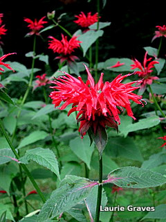 As we ate, hummingbirds came to the feeder and the bee balm for their evening meal. Dusk settled over the backyard and with it came the dampness. We all agreed it was time to go inside for some hot tea, but how good it had been to sit outside on the patio as we talked, ate ice cream, and looked at birds and flowers.