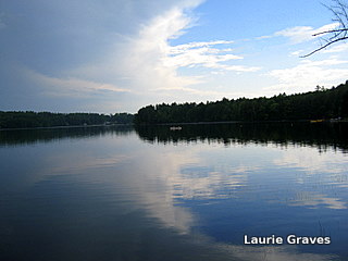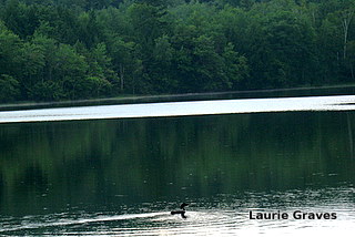 Yesterday was a rumbling kind of day, with blue sky alternating with dark clouds and rain. In between rumbles, the dog and I walked to the Narrows. On the Upper Narrows, quite close to shore, I saw a loon. I took a picture of it, but I didn’t have any great hopes that the picture would turn out well. Although the loon was not far from shore, it still seemed too far away for my little Cannon.