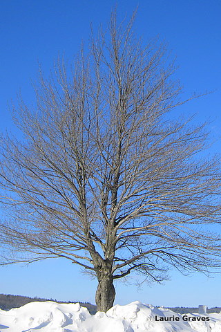 Finally, even though my feet were so cold that I could hardly feel them, I took a picture of this tree, with its bare branches against the bright blue sky. Such a beautiful sight, even in the extreme cold.