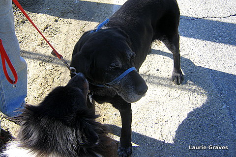 A little while later, we met Megan the dog and her person, both back from winter in a warmer place. Liam has known Megan since he was a puppy, and I remember how she used to nuzzle his little back.