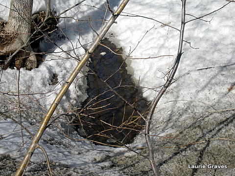 More running water where the stream has finally broken through the snow.
