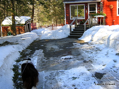 And back to our very own little house in the big woods where we can actually see bare driveway.