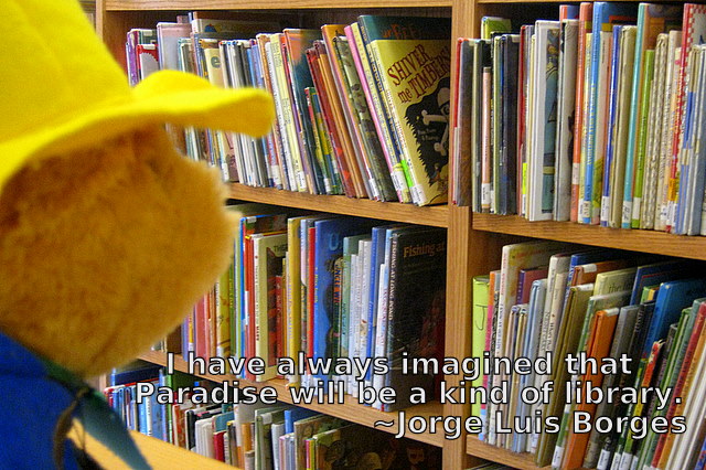 So here is my give-away: Three sets of three library cards—your choice of cards. My husband Clif took the pictures in our own dear Bailey Library. I found the quotations and paired them with the pictures.