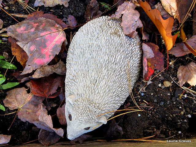 I have begun bringing in the various garden ornaments, but this little creature is still guarding the yard. Soon he will be down cellar with the others.