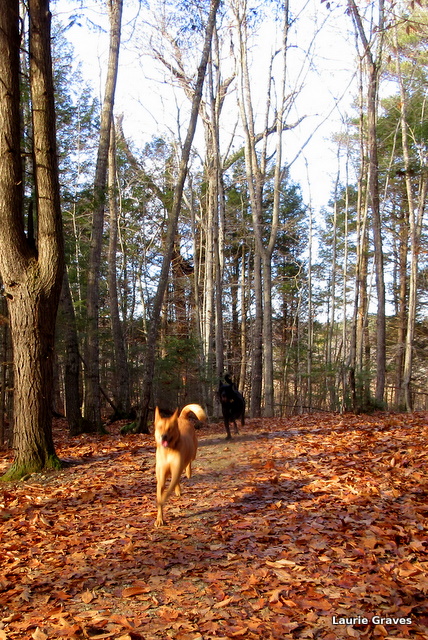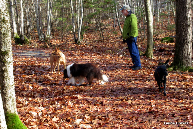 Each day, into the woods we went so the dogs could sniff and run and play. How lucky for us to have such beautiful trails so close by. And, I must admit, even though it is freakishly warm for December in Maine—in the fifties, no less—I was grateful to have bare trails for our doggy romps.