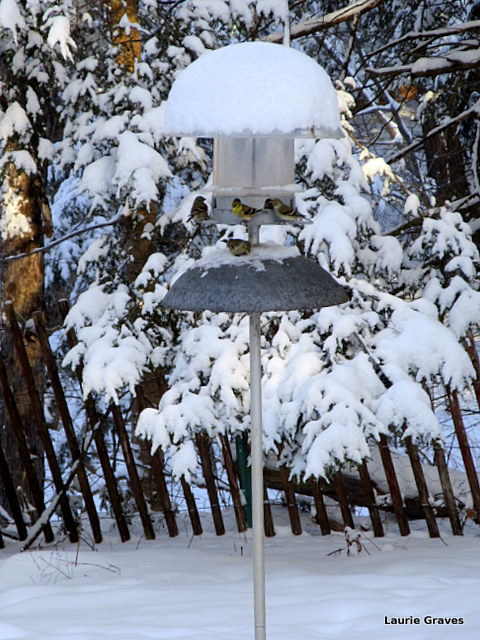 Our goldfinches have been very active, too. I sprinkled some extra food on the ground near the feeders after the snow and I think all the birds in the neighborhood have been by. The snow provides such a lovely background for bird watching.