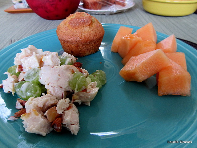 Then came a wonderful lunch of chicken salad with grapes, almonds, and a bit of marmalade with the mayonnaise; raspberry muffins; and cantaloup. For dessert, hermit cookies. Let’s just say my reputation as A Good Eater remains untarnished.