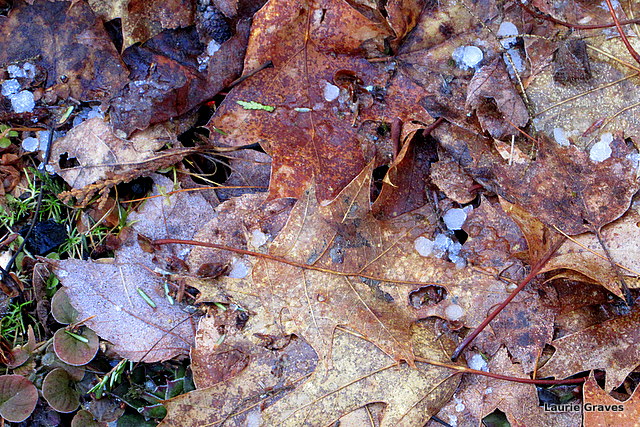 Last night, as Clif and I were watching Bosch, we heard a rapid patter against the house. Clif paused the show—we were watching it on Amazon Prime—and “That sounds like hail,” I said. This morning when I looked outside, my suspicions were confirmed when I saw little ice balls scattered on the leaves around my garden.