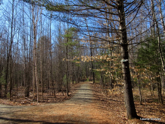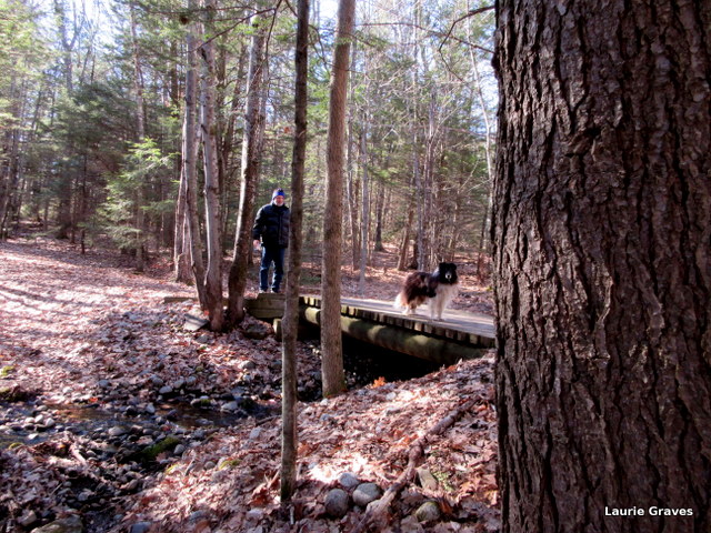 Because the day was so fine and the dog had been left alone for a fair amount of time, we decided that after pizza, a walk in the woods was in order.