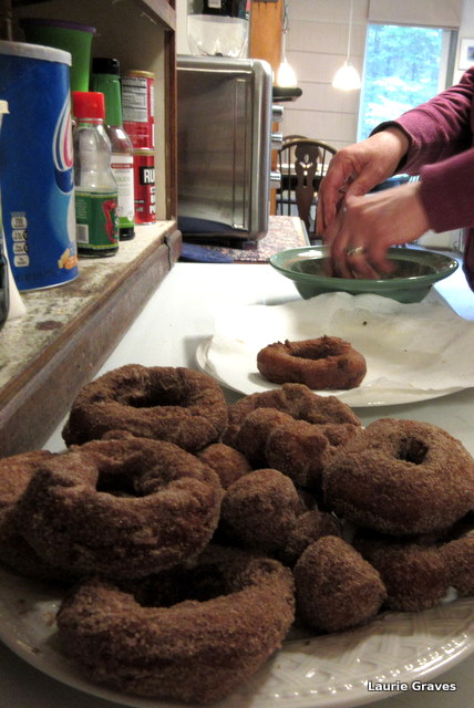 With a firmer dough and Dottie’s method, we were finally in donut-making business, with me cutting the donuts, Clif frying them, and Alice rolling them in sugar and cinnamon.