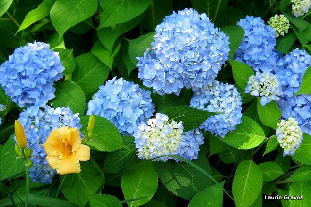 “It would take a lot to beat the picture of the blue hydrangeas with the yellow daylily,” I told her recently. “I was in your garden just at the right time.”