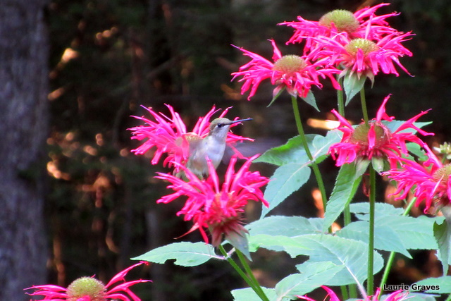 Beautiful! I love the hummingbirds, too. I once saw one put his beak into a tube of bee balm and when he backed up, the flower tube was still stuck to he beak. He had to shake his head back and forth to get it off.