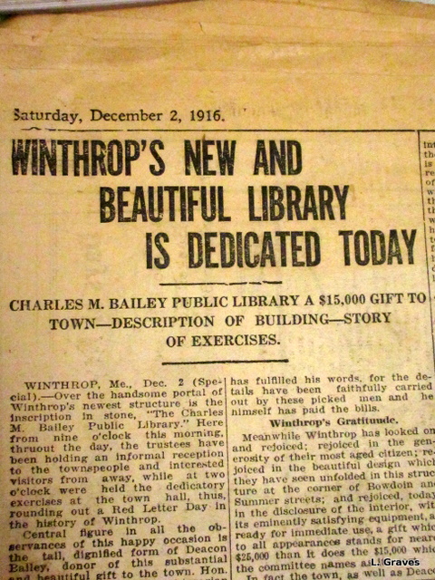 Last Saturday, while I was selling books at the Winthrop Craft Fair, there was a party going on at the Charles M. Bailey Public Library in honor of its 100th birthday.