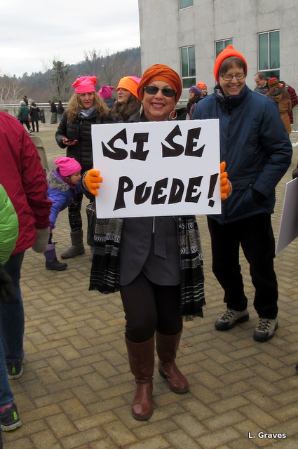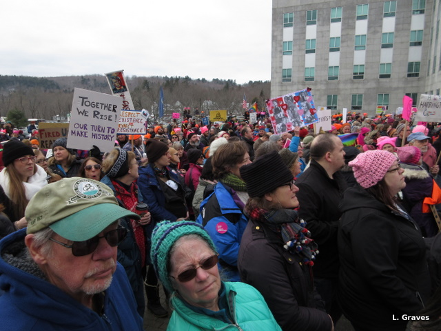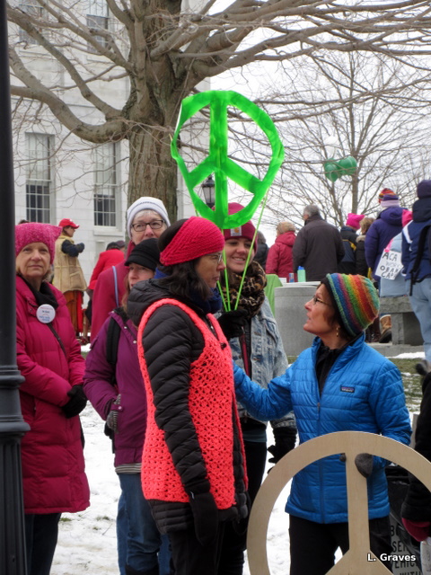 On Saturday, Clif and I joined 10,000 people in Augusta, Maine’s sister march of the Women’s March in Washington, DC. Because I am claustrophobic and therefore don’t like large crowds, I knew it would be grueling for me, and in fact I was reluctant to go. But earlier in the week, my friend Judy Johnson convinced me to attend when she said, “I want my warm body to be counted in the crowd.”