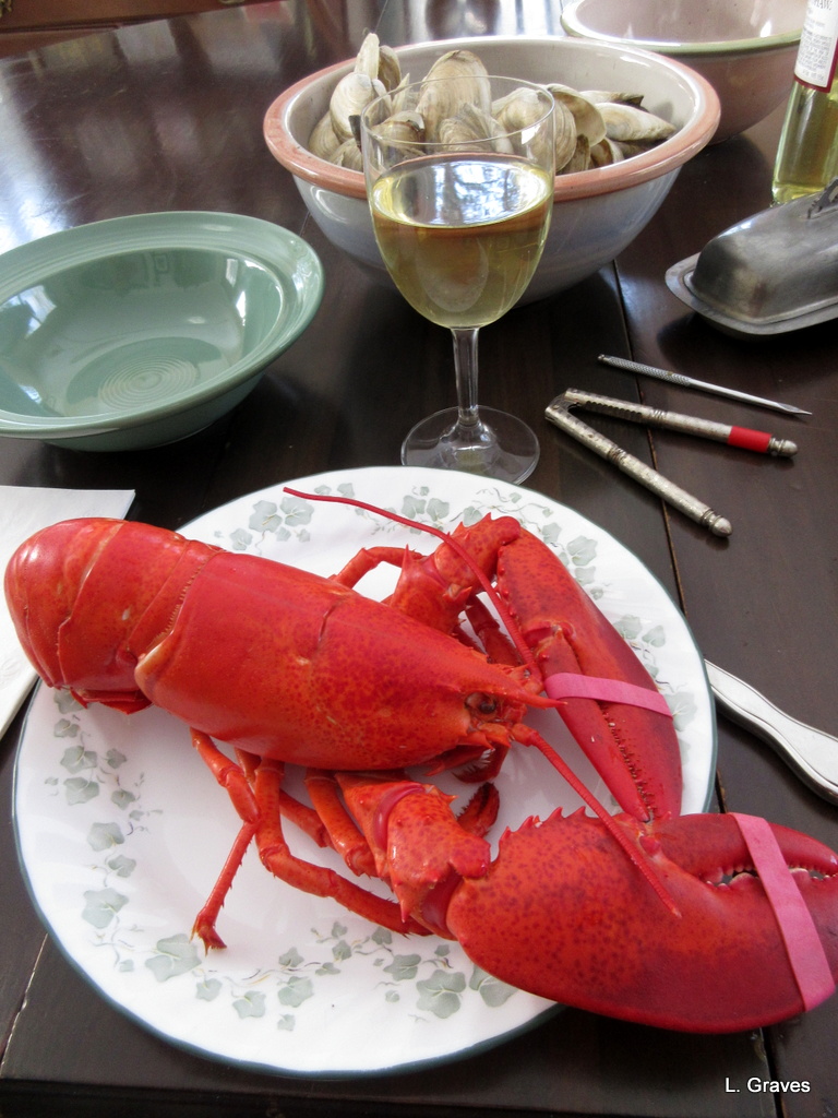 That’s my idea of the perfect anniversary dinner, lobster and clams, oh my. This snow is slow to melt isn’t it? But the morning bird song feels like spring.