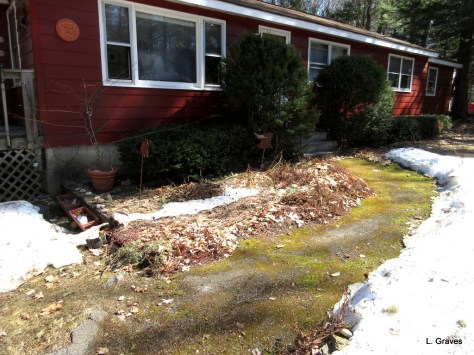 Now, readers in warmer places might not be impressed by my yard, but to me it is a glorious sight to behold. In the shady front yard, the snow is melting nicely.