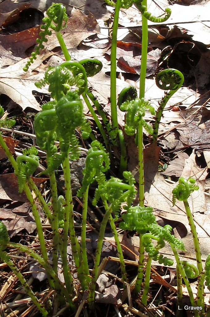 Second—The Emerging Ferns: That curl of green, the gradual unfurling. With ferns, there are no buds or blossoms, but what a sweet sight when each spring they push their way through the brown leaves.