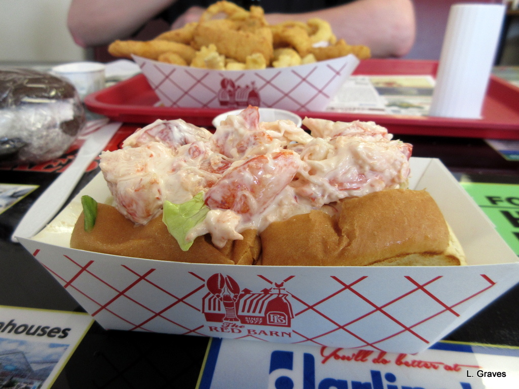Yesterday was a finest kind of day, even though it was hotter than heck—in the 90s. For Mother’s Day, Shannon gave me a gift certificate to the fabulous Red Barn––thank you, Shannon!—and our first stop was lunch. I had one of my favorite things—a delectable lobster roll—and Clif had fish and chips and a side order of onion rings.
