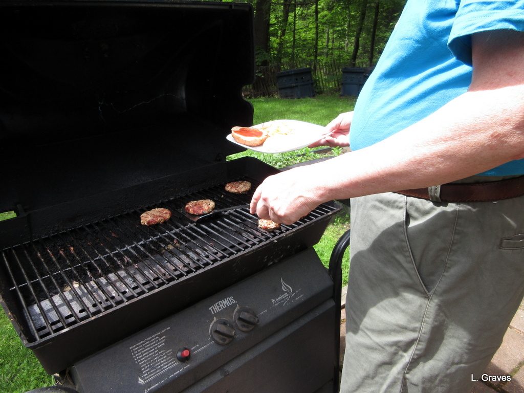 When we got home, up came the big green patio table, and we were ready for our first barbecue of the season—turkey burgers.