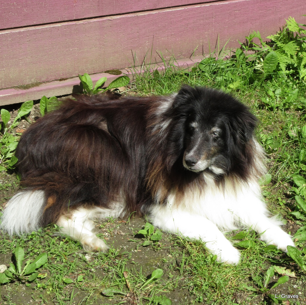 Last week and this week were rough for us and for our dog, Liam, who’s twelve years old and blind. He had digestive/intestinal problems that kept us all hopping, sometimes twice during the night. My, we’re tired. At one point, we were even considering canceling our Fourth of July gathering. But, after a few days of a chicken and rice diet and a trip to the vets, Liam’s system seems to be settling down, and we can carry on with our Fourth of July plans. This is all a preamble to say that first, I am thankful for the Winthrop Veterinary Hospital and especially for Dr. Marie Barengo for helping to get Liam on the road to recovery. (The bacteria in his system was out of whack, and he’s on medication.) Twined with this is how thankful I am to have this wonderful dog. We love our dog buddy, that’s for sure.