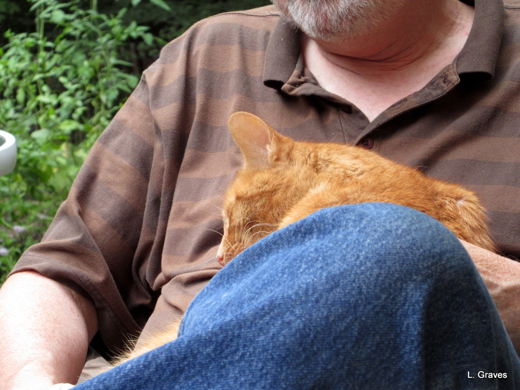 This is our cat Sherlock. See how sweet he looks sleeping on Clif’s lap?