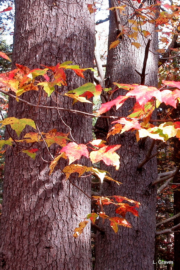 We have had a couple of waves of autumn color, usually a few days before rain, which has taken off that layer of leaves. However, Tuesday night, the trees that were still green turned yellow, red, rust, and brown. We have enjoyed the color for this week. Saturday night, rain is coming. I have tried out the new leaf blower too. It may have enough power to send me 20 feet up into a tree, if I point it the wrong way. -Oscar