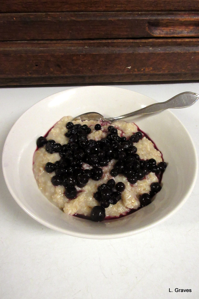 So, first: Oatmeal for breakfast with a generous serving of Maine blueberries, the sweetest of them all.