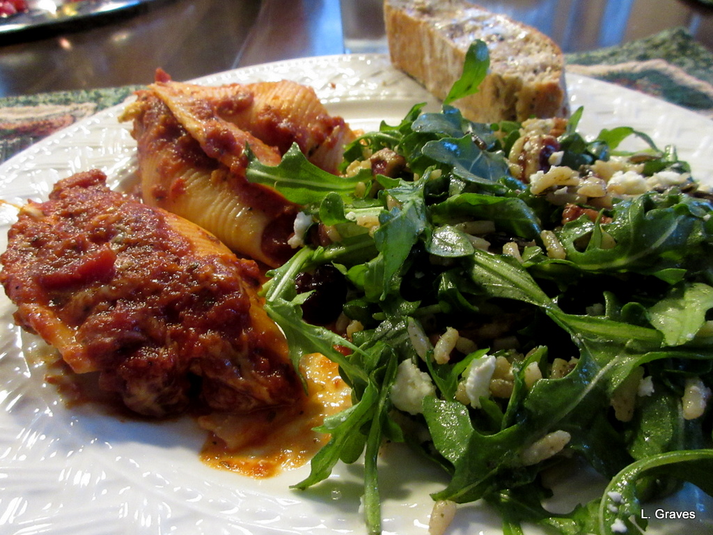 It all looks delicious. I love stuffed shells (and manicotti, ravioli, lasagna …)