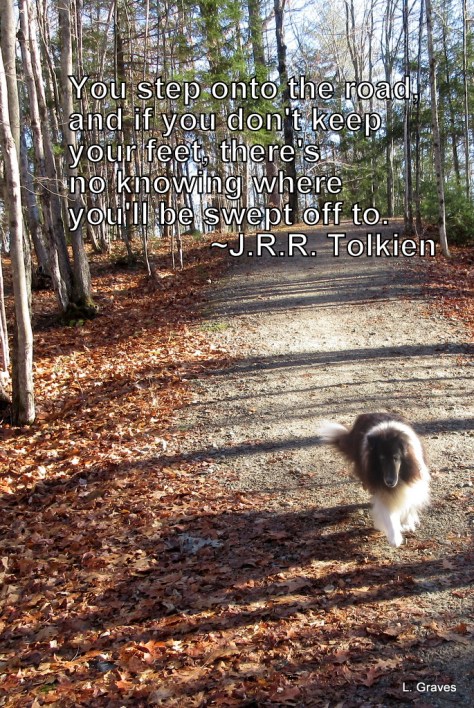In honor of Liam’s birthday, here is a picture, complete with a Tolkien quotation, of Liam when he could still see. The photo, used as a card, was taken on the trails behind the town’s high school, one of Liam’s favorite places before he went blind.