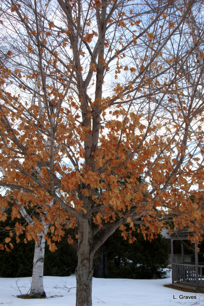 Thanks, Clare! I looked closely at the leaves but still wasn’t sure what kind of tree it was. I, too, was thinking maple, but it’s unusual for a maple tree to keep its leaves in the winter.
