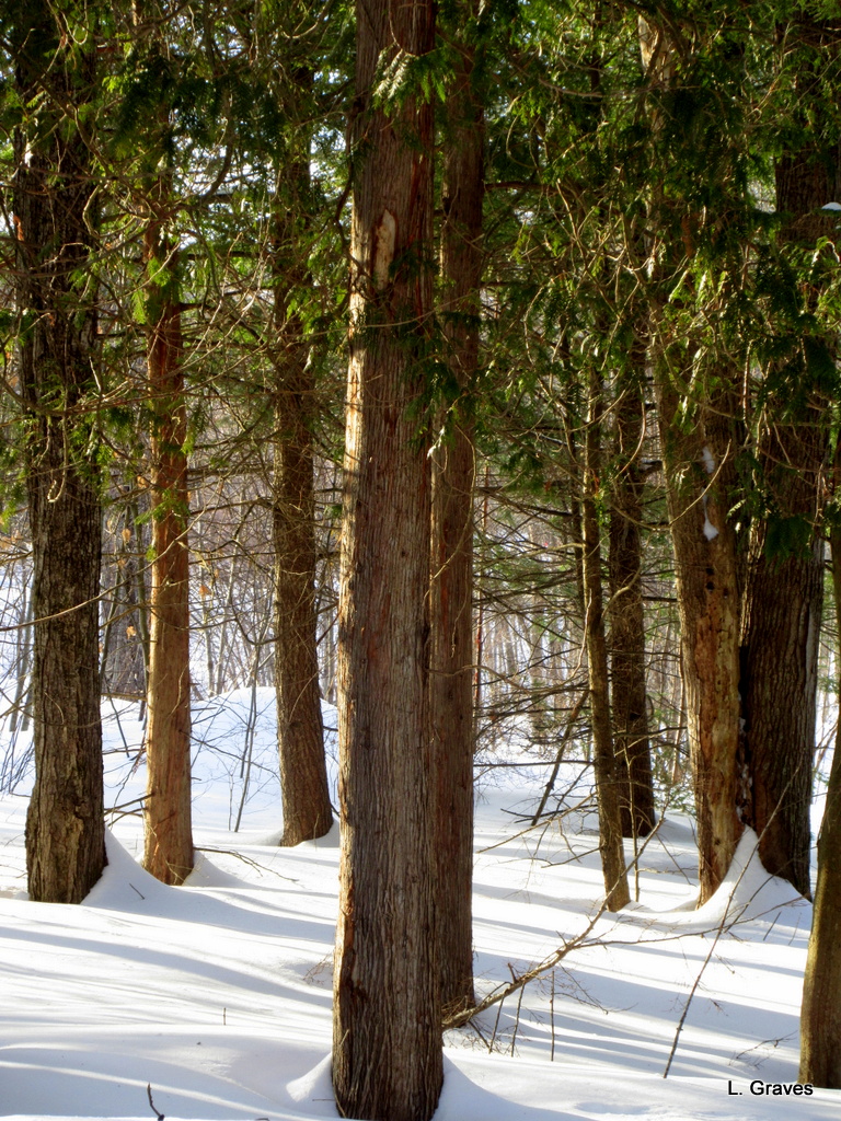 The light through the trees is just perfect! The contrast of light and shadows is even more important in the winter. Thanks.