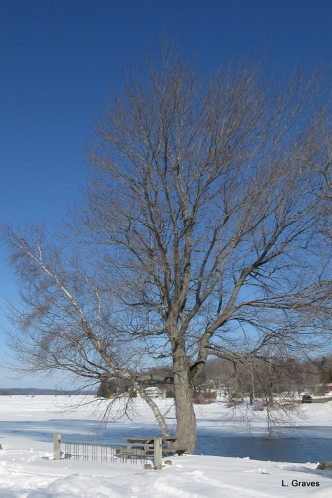 I love your snowy tree up against the blue skies….and the classic New England photo….looks like a scene from one of the chocolate boxes my mother used to buy and give as gifts!
