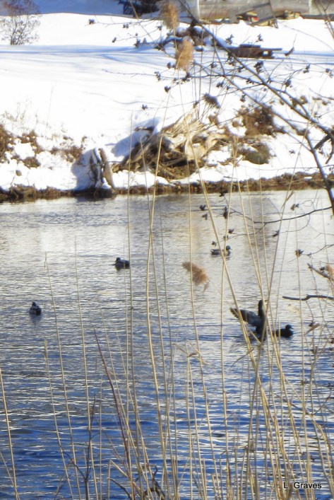If you look closer, you will even see some ducks—mallards, I think—swimming in the open water.
