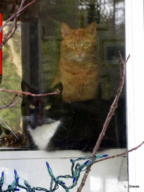 The expression in Sherlock and Ms Watson’s eyes would make me turn round and stay at home with them! A lovely photograph of your cats Laurie :o) xxx