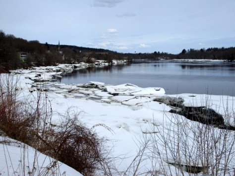 However, rather than brood about the mud, I’ll turn to the Kennebec River, which is beautiful and fascinating no matter the season.