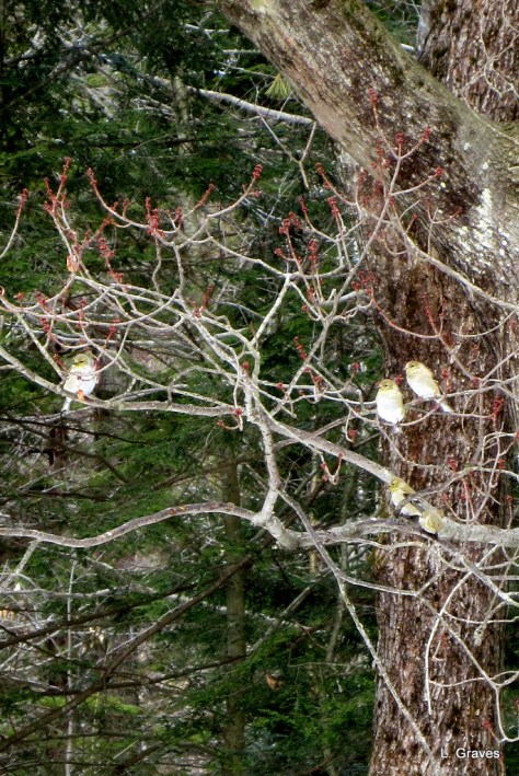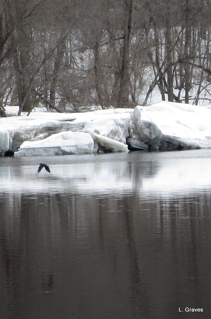 That’s a lotta thick ice on the river! I like that last pic of the red maple buds and birds– very sweet.