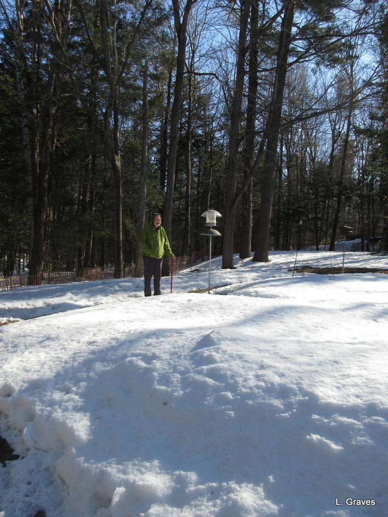 Here we are, at the end of March. Finally, finally, the weather seems to be softening. We still have plenty of snow, as the following pictures indicate, but the days have been sunny and if not exactly warm, at least not quite as cold.