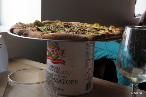 So true about good places and crowds. The Brussels sprouts were finely grated, and Alice’s pizza really was scrummy.