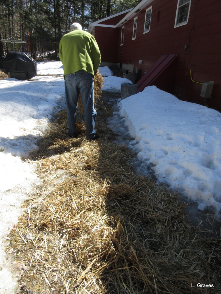 Good old straw–I remember this solution from our farm, when I was a kid. You’ll be needing more bales, I suspect . . .