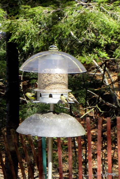 The goldfinches, who are making a sound and a fury most days, are flocking to the feeder, and the males are slowly beginning to show their beautiful summer plumage.