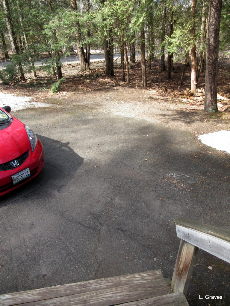Snow-out from the patio put in me in such a good mood that I decided to sweep the driveway. Hundreds and hundreds of little cones had fallen, the most I’ve ever seen in our driveway in spring. What a nice feeling of accomplishment to have the driveway free of those little cones.