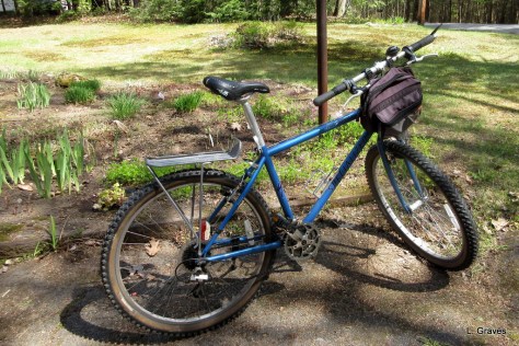 We rode our usual route of eight miles, and except for some slight knee pain, it was go, go, go for me. For the past few months, I have been faithfully riding my exercise bike, and yesterday I saw the benefits of this, ahem, boring workout. It’s been a long time since I have started the biking season feeling so strong and ready to go. I am very hopeful that by midsummer, we will be going on longer bike rides.