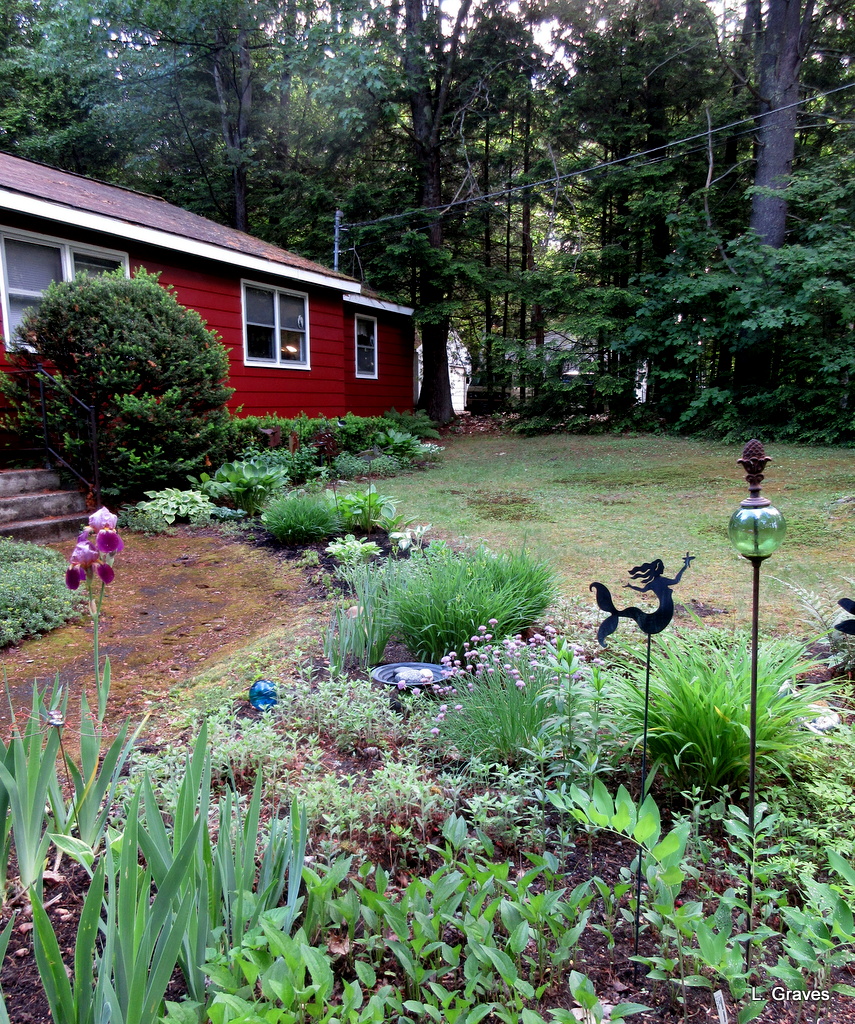 Now, as I’ve previously written, my preference would be to have gardens with glorious bursts of flowers from May through September. And when my blogging friends feature their bright, beautiful gardens, I am filled with conflicting emotions—admiration, awe, and envy. But we live in the woods, and while there are many pleasures to be gained from this, riotous blooms aren’t one of them.