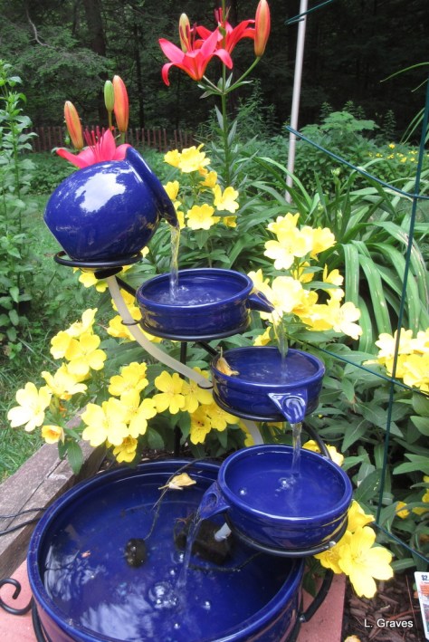 Your garden looks wonderful and I hope you’re feeling better with the cooler temperatures!🙂 I would love a month of weather like the last two days, but I’m hoping this nice break will help me deal with my attitude when the heat returns. Love your blue fountain!!🙂