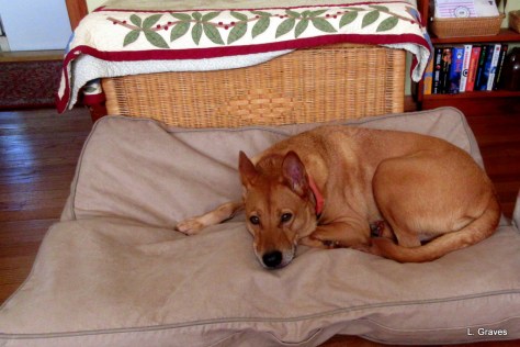 And here are Holly and Somara resting in my room as I write. Shannon and Mike have gone to visit a friend, and we are dog sitting.