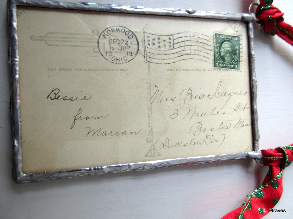 And here is the back. In 1913, Marian sent Bessie this card. Now how cool is that?